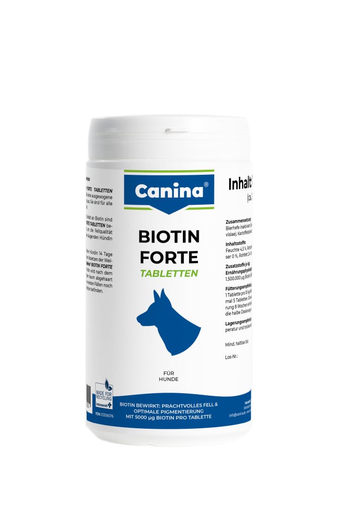 Biotin napomáhá k růstu srsti po atopickém ekzému či napadení parazity. Brání také vypadávání chlupů u březích či kojících fen, důležitý je i pro zdravý vývoj kůže a pevných drápů. Majitelé výstavních psů ocení, že přípravek srst nijak nebarví.